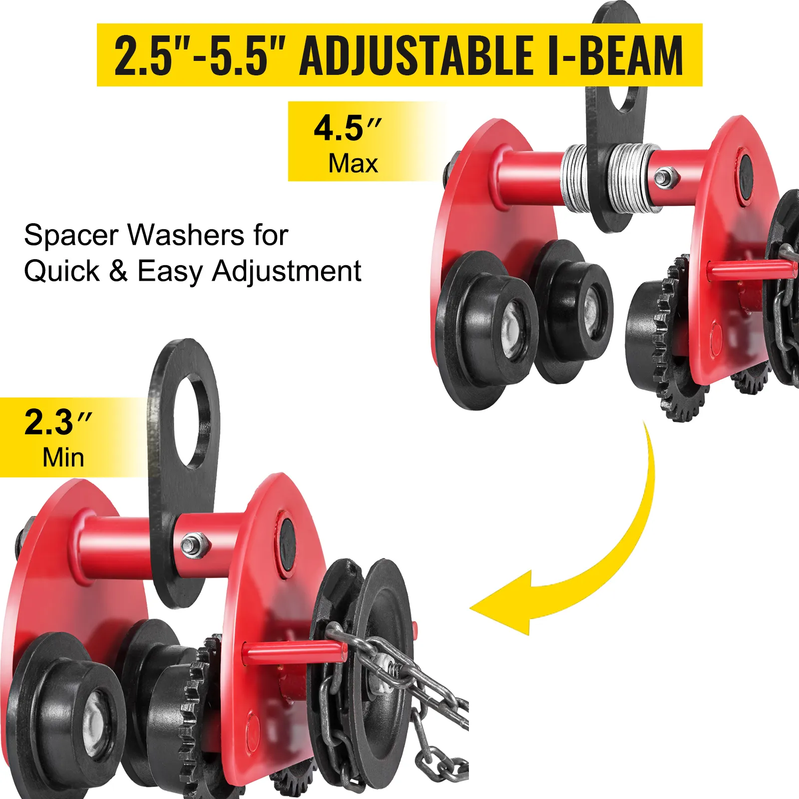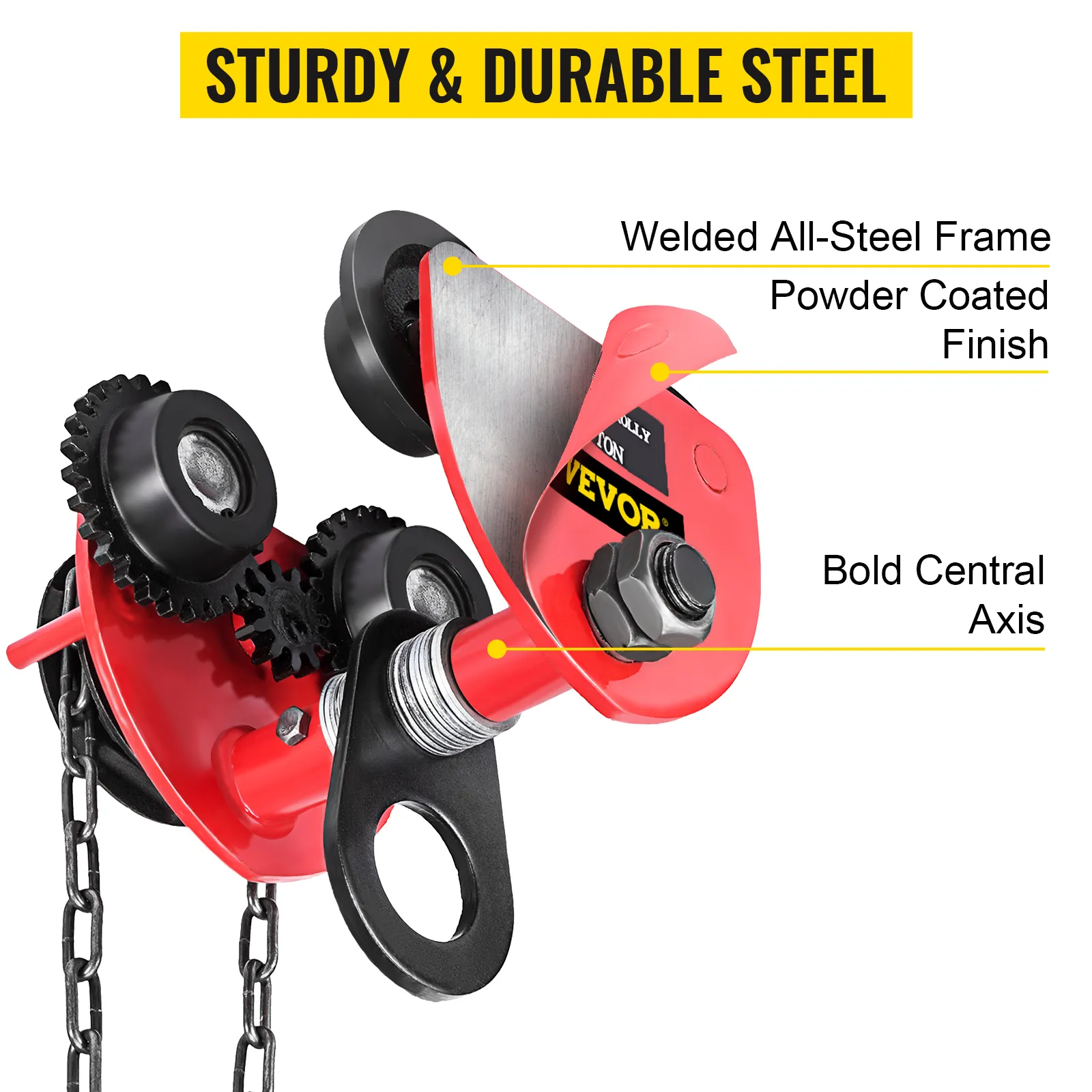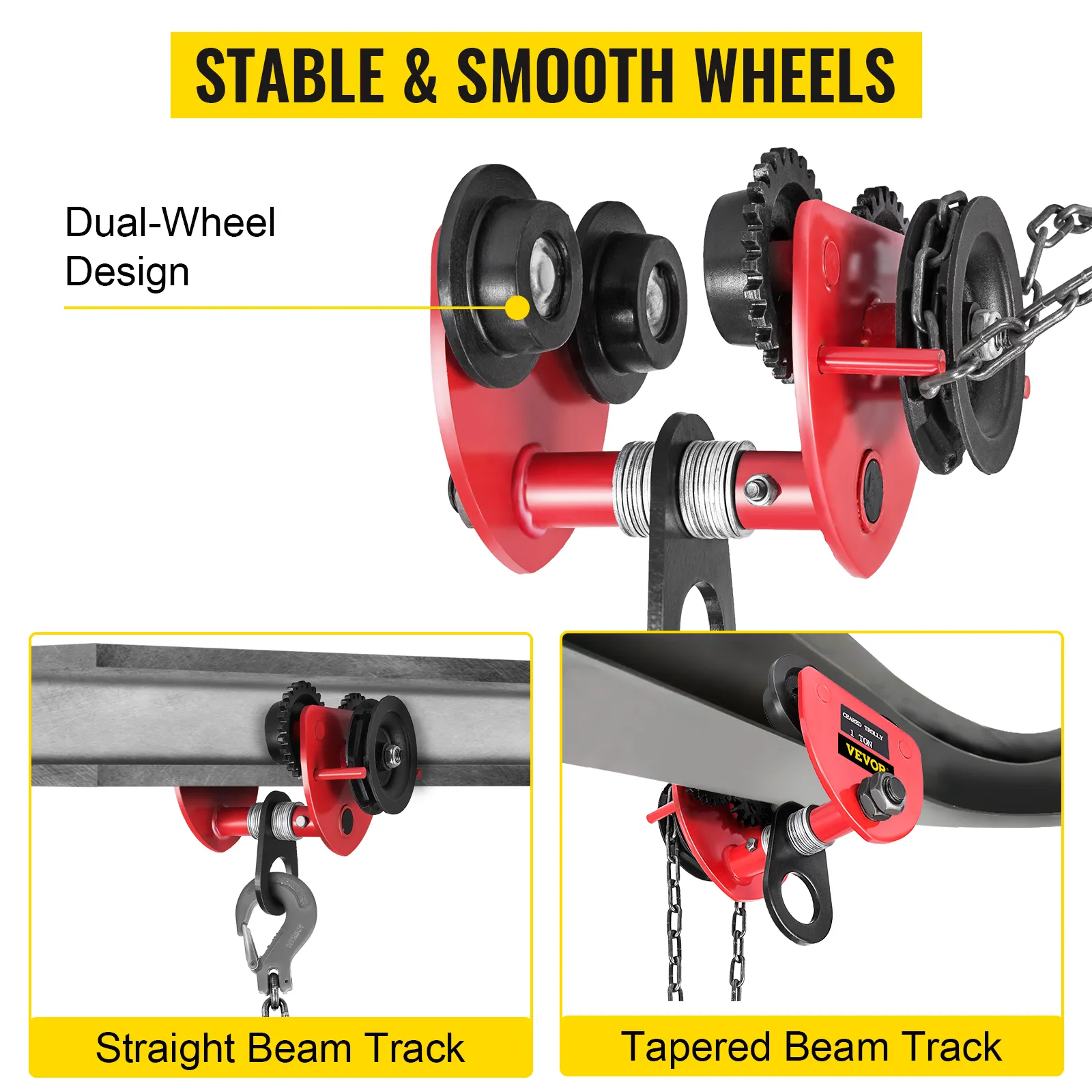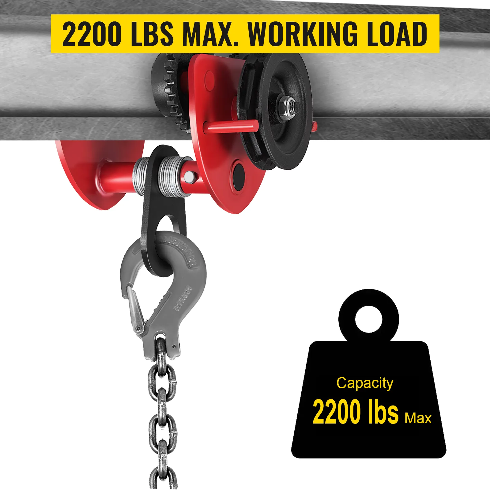 The beam trolley allows you to move up to 2,200 lbs / 1 ton with a simple push. Thus, transporting heavy loads becomes an enjoyable process.