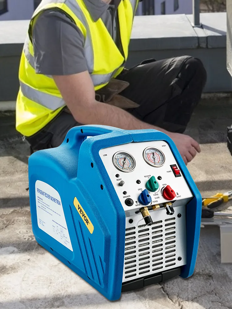 This portable refrigerant recovery is widely applicable to both residential and commercial use. It works with all common CFC, HFC, and HCFC refrigerants.
