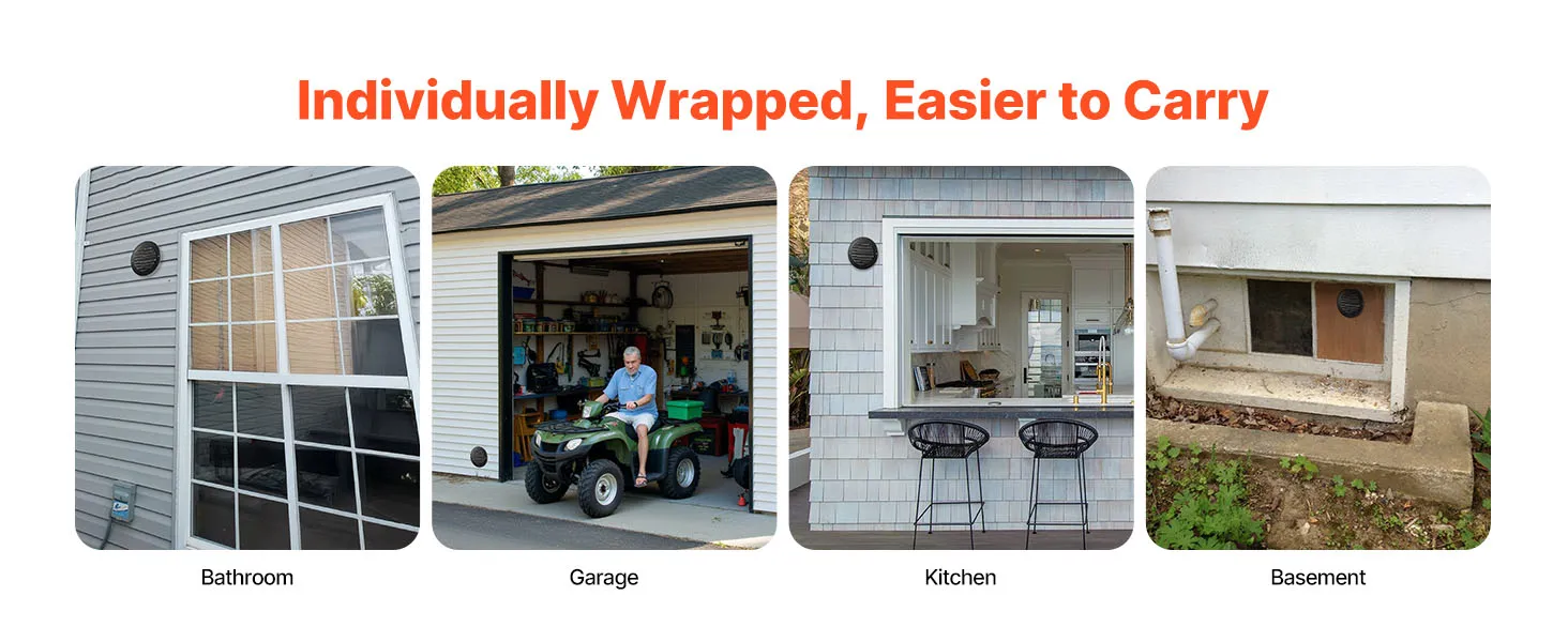 Suitable for use in bathrooms, garages, kitchens, basements, or pet rooms. It can also be connected to dryers or air conditioning systems for effective ventilation.