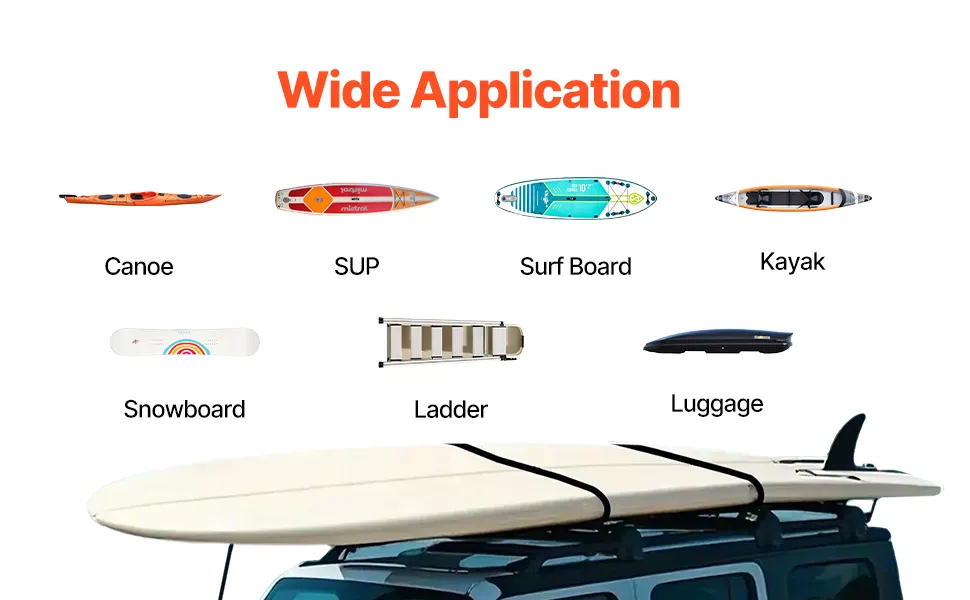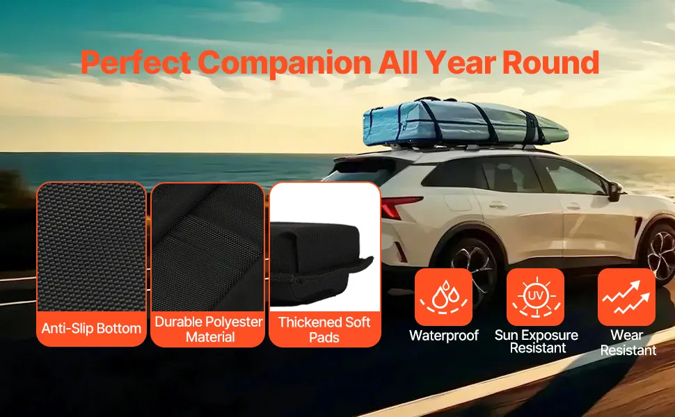 Versatile Applications: Create extra storage on your roof to transport gear like kayaks, surfboards, long boards, paddle boards, snowboards, and more. Whether for leisure or work, this universal roof rack pads for cars are fantastic solutions for your life on the go.