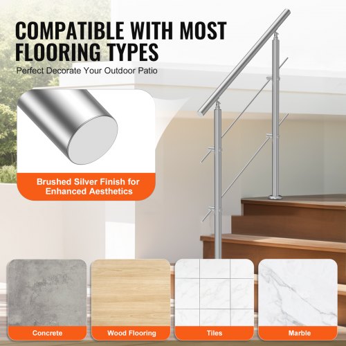 VEVOR Round Type Metal Handrail Step Handrail 2 Steps Handrails for Outdoor Steps Handrails 18L x 38H Inch Steps Stair Railing for Steps with One Bolt Down Post