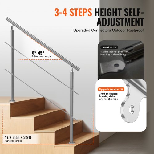 VEVOR Handrails for Outdoor Steps, 2-3 Step Adjustable Height, Carbon Steel Transitional Handrail with Installation Kit, Exterior Hand Railing for Steps, Concrete or Wooden Stairs, Porch, Matte Black