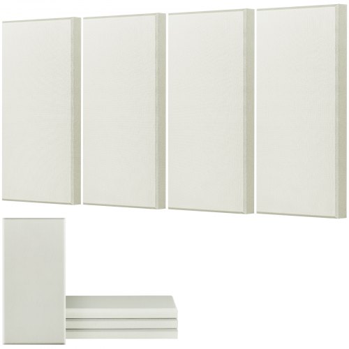 VEVOR 4 PCS Acoustic Panels, 2 inch Thick 23.6 x 11.8 inch Fiberglass Sound Absorbing Panels, Self-adhesive Soundproof Wall Boards, for Studios, Office, Home Theater,Meeting Room, Beige