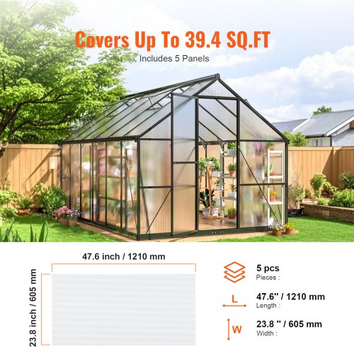 VEVOR 5 Pack Polycarbonate Greenhouse Panels, 2' X 4' X 0.32'' Roof Panels Sheets, Waterproof UV Protected Corrugated Plastic Roofing, Impact Resistance Clear Roofing Sheets for Greenhouse/Garden