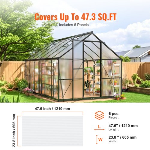 VEVOR 6 Pack Polycarbonate Greenhouse Panels, 2' X 4' X 0.16'' Roof Panels Sheets, Waterproof UV Protected Corrugated Plastic Roofing, Impact Resistance Clear Roofing Sheets for Greenhouse/Garden