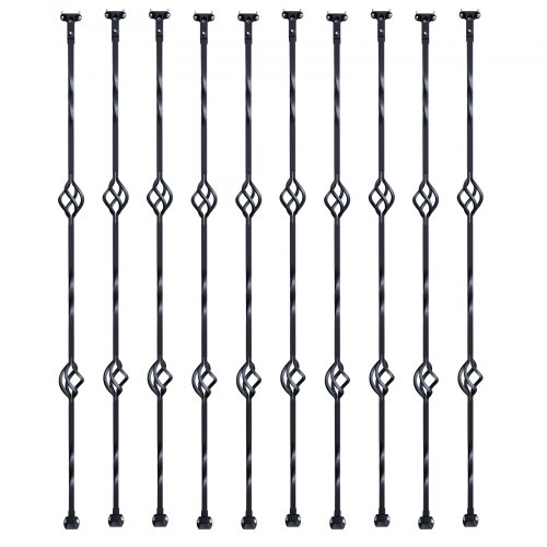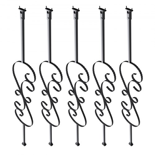 VEVOR Staircase Metal Balusters, 44'' x 1/2" Galvanized Steel Decorative Banister Spindles, 5 Pack S Shape Deck Baluster, Hollow Satin Black Spiral Stair Railing with Shoes & Screws