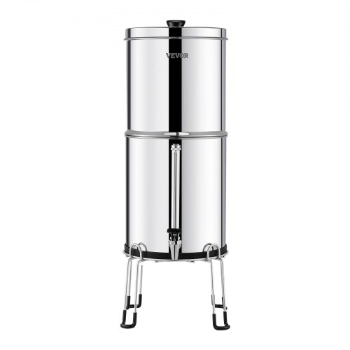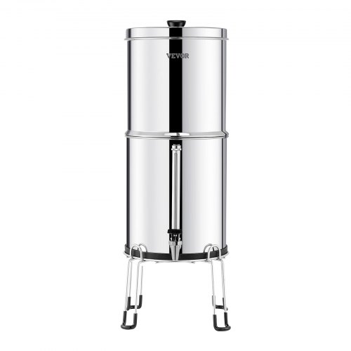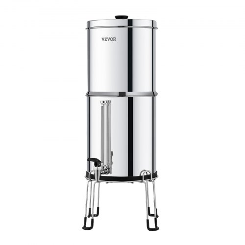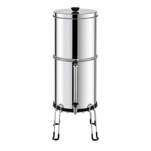VEVOR Gravity-fed Water Filter System, 2.25G 304 Stainless-Steel Countertop Water Filtration System, Reduces Lead and up to 99% of Chlorine, with 2 Ceramic Carbon Filters, Water Level Spigot, Stand