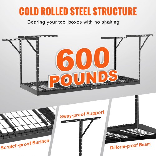 VEVOR Overhead Garage Storage Rack, 36x96 inch Garage Ceiling Storage Racks, Heavy Duty Adjustable Cold Rolled Steel Racks for Garage Storage, Organization, 600 lbs Load Capacity, 22''-40", Black