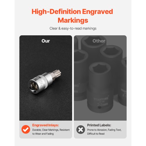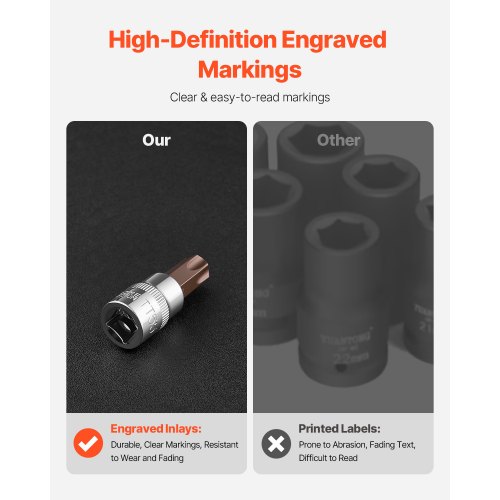 VEVOR Torx Bit Socket and External Torx Socket Set, 31-Piece T8-T70 and E4-E24, S2 Alloy Steel and Cr-V Steel, 1/4 in, 3/8 in, and 1/2 in Drives, with Adapter and Enhanced Storage Case, for Automotive
