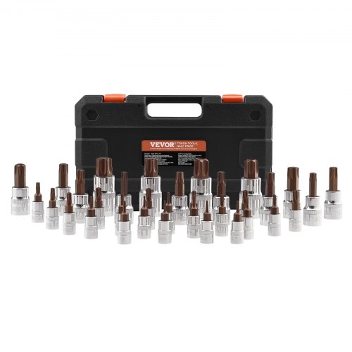 VEVOR Torx Bit Socket Set, 34-Piece Solid Star and Tamper Proof T6-T70, S2 Alloy Steel and Cr-V Steel, 1/4 in, 3/8 in, and 1/2 in Drives, with Enhanced Storage Case, Torx Sockets for Hand Use