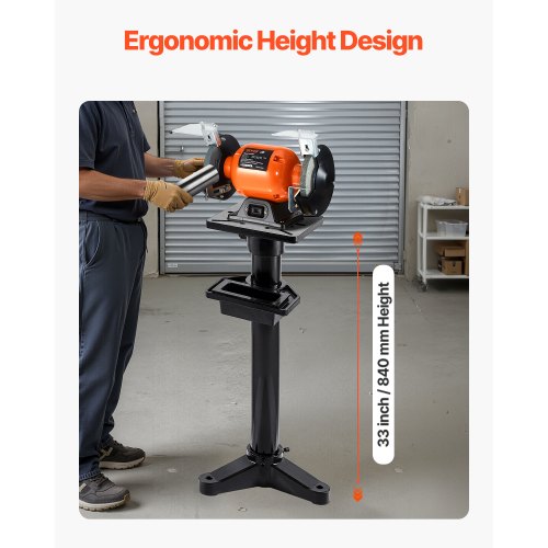 VEVOR Bench Grinder Stand, Bench Grinder Vise Floor Pedestal with 31.5 x 25.4 cm Mounting Plate, Height-Adjustable Pedestal Stand with Grinding Wheel Storage Compartment & Heavy-Duty Cast Iron Base