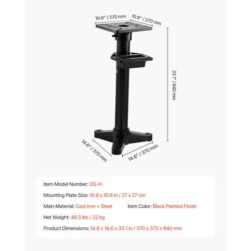 VEVOR Bench Grinder Stand, Heavy-Duty Grinder and Vise Floor Pedestal with 27 x 27 cm Mounting Plate, Pre-Cut Mounting Slots & Water Pot, Compatible with Most Bench Grinders