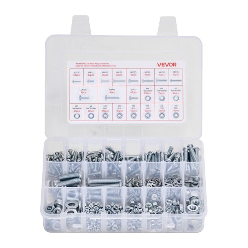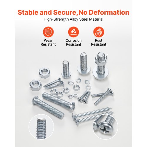 VEVOR 2250 Pcs Bolts and Nuts Assortment Kit, Metric + Imperial Machine Screws and Flat Washers, Alloy Steel M3/M4/M5/M6/M8 Multiple Size, for Equipment/Vehicle Assembly,Galvanized White