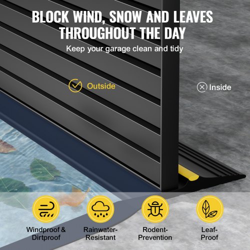 VEVOR Garage Door Threshold Seal Strip, 16.5 FT Universal Garage Door Floor Seal Strip with Adhesive, Garage Door Bottom Weatherproof Strip, Upgraded Thick PVC DIY Weather Stripping Replacement, Black