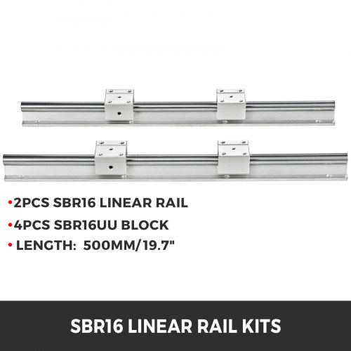 VEVOR Linear Rail 2PCS 500mm SBR16 Linear Slide Rail 4PCS SBR16UU Bearing Block CNC Kit Linear Rails and Bearings Kit CNC Rails Linear Rail Set for CNC Machines Automated Machines and Equipments