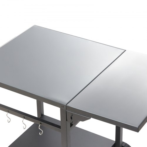 VEVOR Outdoor Grill Dining Cart with Double-Shelf, BBQ Movable Food Prep Table, Multifunctional Foldable Iron Table Top, Portable Modular Carts for Pizza Oven, Worktable with 2 Wheels, Carry Handle