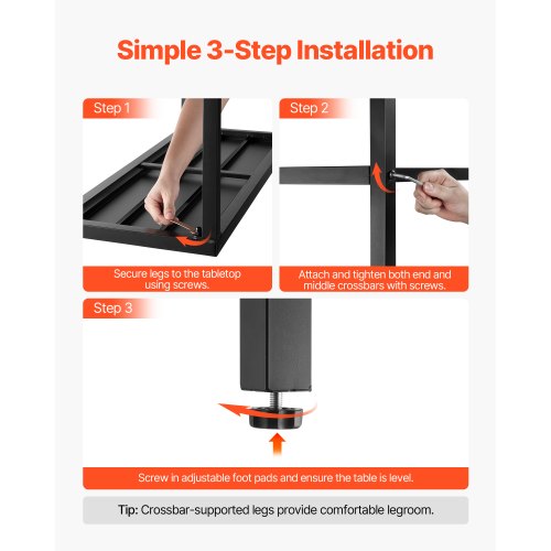 VEVOR Hairpin Metal Table Legs 28 Inch Desk Legs Set of 4 Heavy Duty Bench Legs 3-Rod Metal Furniture Legs Wrought Iron Coffee Table Legs Home DIY for Dining Table with Rubber Floor Protectors Black