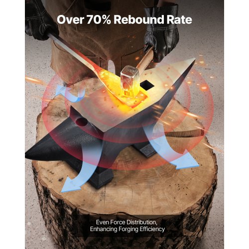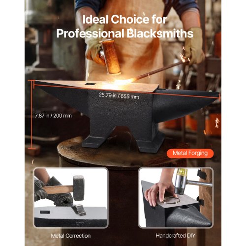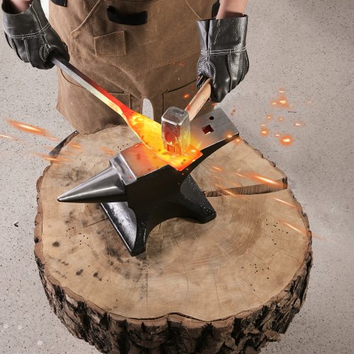 VEVOR Cast Steel Anvil, 132 Lbs(60kg) Single Horn Anvil with Large Countertop and Stable Base, High Hardness Rugged Round Horn Anvil Blacksmith, for Bending, Shaping