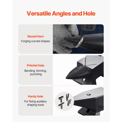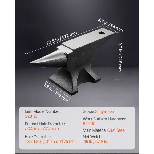 VEVOR Single Horn Anvil, 110lbs Cast Steel Anvil, High Hardness Rugged Round Horn Anvil for Blacksmiths, with Large Countertop and Stable Base, Metal Working Tool for Metal Bending, Shaping, Twisting