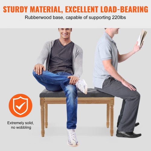 VEVOR Upholstered Bench, 16"W Ottoman Bench, End of Bed Bench with Foam Padded Cushion and Rubberwood Legs, Tufted Footrest Stool Entryway Bench for Dining Room, Living Room, Bedroom, Hallway, Gray