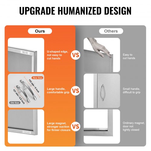 VEVOR BBQ Access Door, 508x686 mm Single Outdoor Kitchen Door, Stainless Steel Flush Mount Door, Wall Vertical Door with Handle, for BBQ Island, Grilling Station, Outside Cabinet
