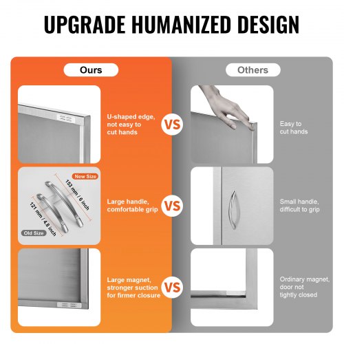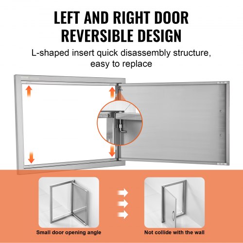 VEVOR BBQ Access Door, 432x610 mm Single Outdoor Kitchen Door, Stainless Steel Flush Mount Door, Wall Vertical Door with Handle, for BBQ Island, Grilling Station, Outside Cabinet