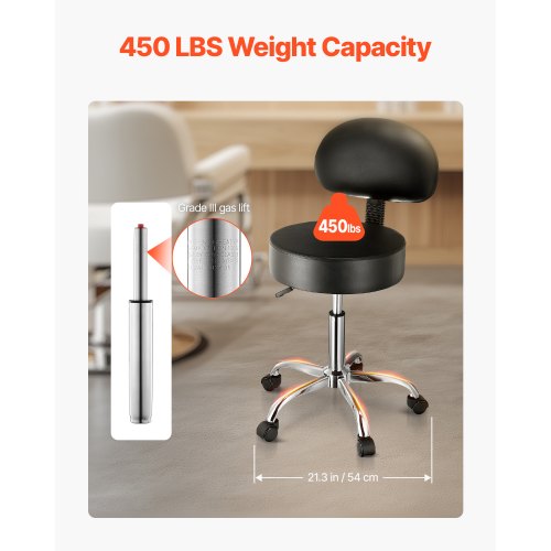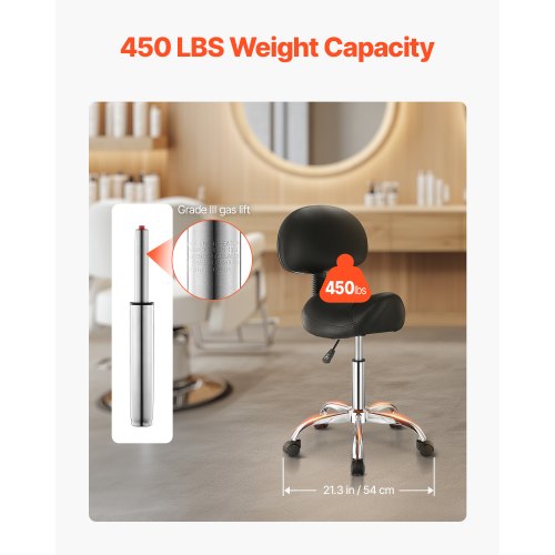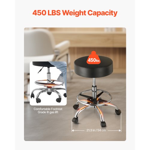 VEVOR Mechanic Stool, 113 kg Rolling Pneumatic Creeper Garage/Shop Seat, Adjustable Height 56 cm-71 cm Padded Rolling Workshop Stool with Tool Tray, for Garage, Shop, Auto Repair, Black+Orange