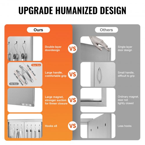 VEVOR BBQ Access Door, 610x610 mm Double Outdoor Kitchen Door, Stainless Steel Flush Mount Door, Double Wall Vertical Door with Handles and Hooks, for BBQ Island, Grilling Station, Outside Cabinet