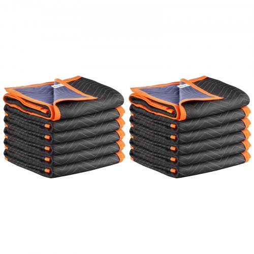 VEVOR Moving Blankets, 80" x 72", 65 lbs/dz Weight, 12 Packs, Professional Non-Woven & Recycled Cotton Packing Blanket, Heavy Duty Mover Pads for Protecting Furniture, Floors, Appliances, Blue/Orange