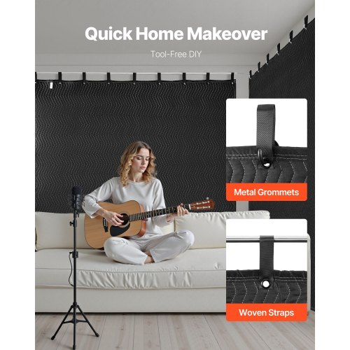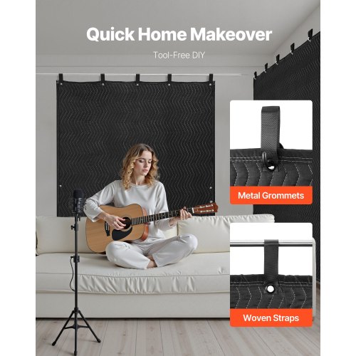 VEVOR Sound Dampening Blankets, Soundproof Curtains with 2032 x 1219 mm, Soundproof Blanket with Grommets, Studio Grommeted Blanket, for Window, Door, Light Blocker, Music Recording, Black