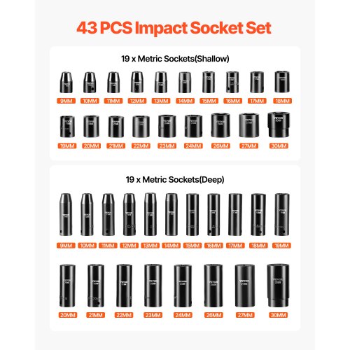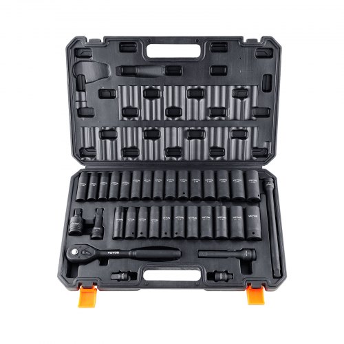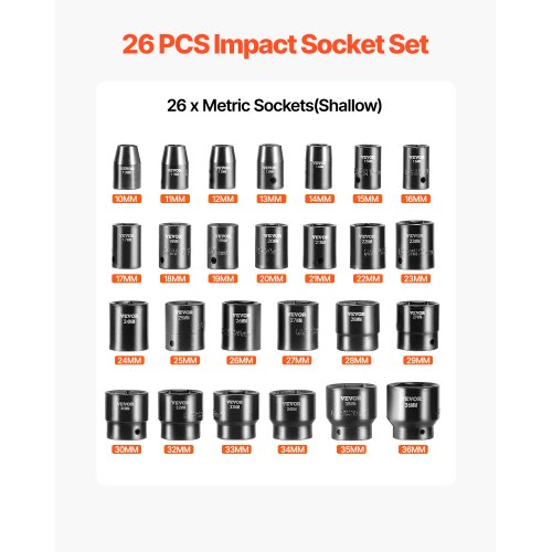 VEVOR 1/2" Drive Deep Impact Socket Set, 34pcs Socket Set Metric (8-36mm) 6 Point Cr-MO Alloy Steel for Auto Repair, Rugged Construction, Includes Heavy Duty Storage Case