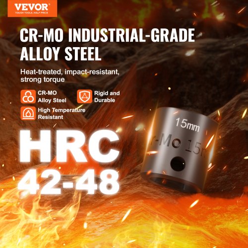 VEVOR 3/8" Drive Impact Socket Set, 15 Piece Deep Socket Set Metric 8-22mm, 6 Point Cr-Mo Alloy Steel for Auto Repair, Easy-to-Read Size Markings, Rugged Construction, Includes Storage Case