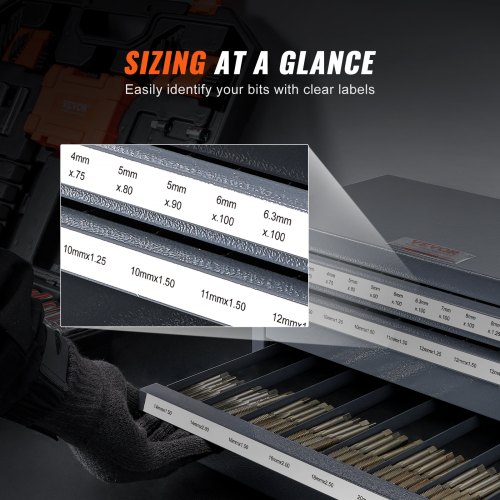 VEVOR Drill Bit Dispenser Cabinet, Three-Drawer Drill Bit Organizer Cabinet for 1.59 mm to 12.7 mm, Steel Drill Dispenser Organizer Cabinet with Labels, Stackable Drill Dispenser for Drill Bit Storage