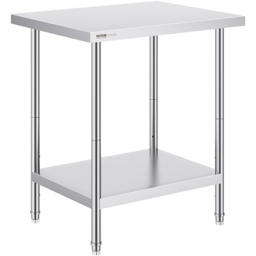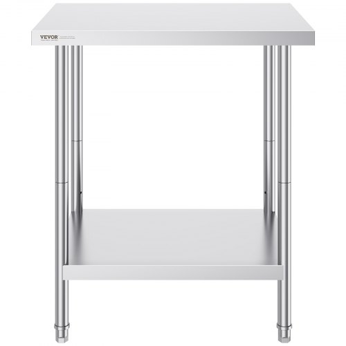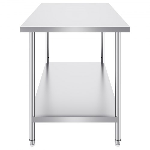VEVOR Stainless Steel Prep Table, 182.9 x 76.2 x 86.4 cm, 249.5 kg Load Capacity Heavy Duty Metal Worktable with Adjustable Undershelf, Commercial Workstation for Kitchen Restaurant Garage Backyard