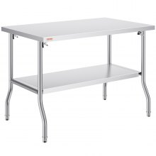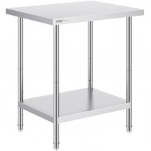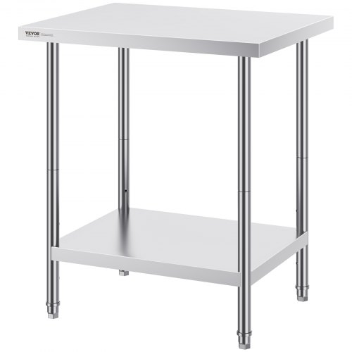 VEVOR Stainless Steel Prep Table, 30 x 72 x 34 Inch, Heavy Duty Metal Worktable with 3 Adjustable Height Levels, Commercial Workstation for Kitchen Garage Restaurant Backyard