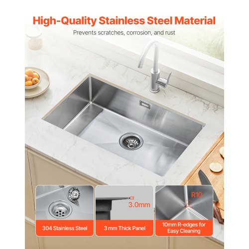 VEVOR 68cm Kitchen Sink Workstation, 304 Stainless Steel Top Mount Sinks, Drop-In Single Bowl Farmhouse Basin with Accessories, Household Dishwasher Sinks for RV, Prep Kitchen, Laundry Room, Bar