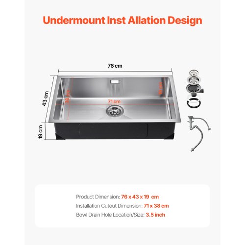 VEVOR 76 cm Kitchen Sink Workstation, Undermount Granite Sink, Drop-In Single Bowl Farmhouse Basin with Multiple Accessories, Household Dishwasher Sinks for RV, Prep Kitchen, and Bar (Black)