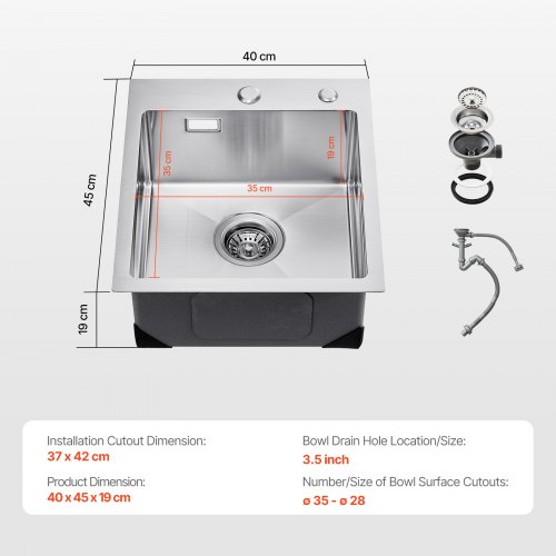VEVOR 40cm Kitchen Sink Workstation, 304 Stainless Steel Top Mount Sinks, Drop-In Single Bowl Farmhouse Basin with Accessories, Household Dishwasher Sinks for RV, Prep Kitchen, Laundry Room, Bar