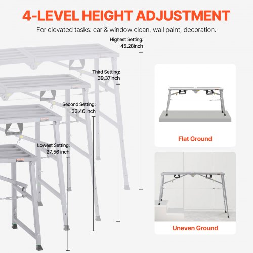 VEVOR Drywall Stilts, 91.4 cm-127 cm Adjustable Aluminum Tool Stilts with Protective Knee Pads, Durable and Non-slip Work Stilts for Sheetrock Painting, Walking, Taping, Silver