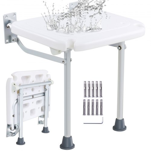 VEVOR Folding PE Shower Seat, 15.7'' x 14.8'' Unfolded, Wall Mounted Fold Up Shower Bench with 500 lbs Load Capacity, Space Saving Fold Down Shower Chair for Seniors Pregnant Women Children Adults