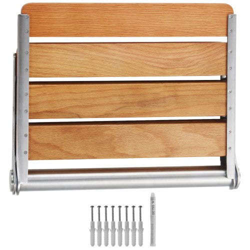 VEVOR Folding Oak Shower Seat 16.1"/40.9 cm x 13.4"/34 cm Wall Mounted Shower Bench 440 lbs/199.6 kg