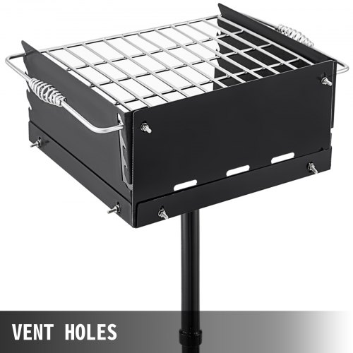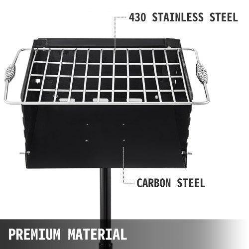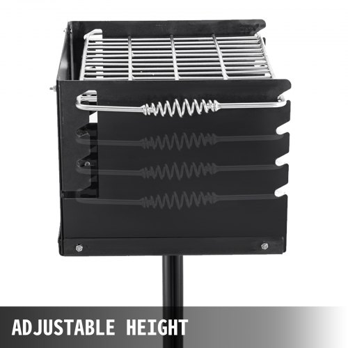 VEVOR Outdoor Park Style Grill 16 x 16 Inch Park Style Charcoal Grill Carbon Steel Park Style BBQ Grill Adjustable Park Charcoal Grill with Stainless Steel Grate Outdoor Park Grill, In-ground Pillar