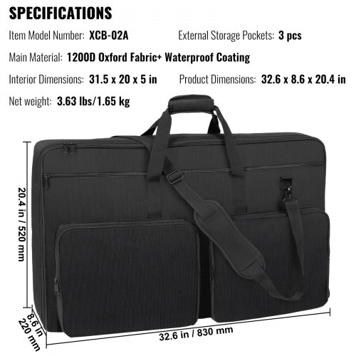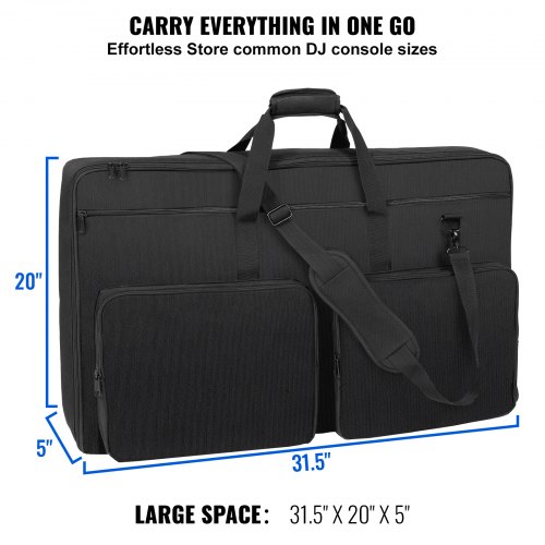 VEVOR Padded DJ Mixer Gig Bag, 1200D Oxford Fabric, DJ Gear Carry Bag with a Storage Pocket 4.92 ft Removable Shoulder Strap 0.39 in Padding, 32.6 x 8.6 x 20.4 in Storage Case Fits for DJ Controller