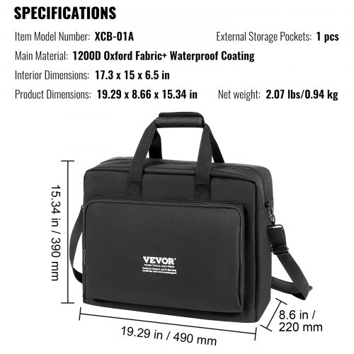 VEVOR Padded DJ Mixer Gig Bag, 1200D Oxford Fabric, DJ Gear Carry Bag with a Storage Pocket 4.92 ft Removable Shoulder Strap 0.39 in Padding, 19.29 x 8.66 x 15.34 in Storage Case for DJ Controller