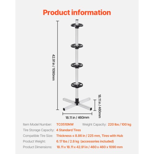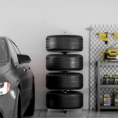 VEVOR Tire Storage Rack, Heavy-Duty Steel Tire Tree Stand for 4 Tires with Rims, Space-Saving Tyre Holder for Tires up to 225mm Wide, Max 220 lbs Load Capacity, Ideal for Garage and Workshop