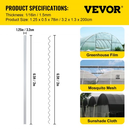 VEVOR Spring Wire and Lock Channel, 6.56ft Spring Lock & U-Channel Bundle for Greenhouse, 50 Packs PE Coated Spring Wire & Aluminum Alloy Channel, Plastic Poly Film or Shade Cloth Attachment with Scre