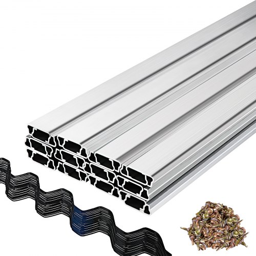 VEVOR Spring Wire and Lock Channel, 6.56ft Spring Lock & U-Channel Bundle for Greenhouse, 30 Packs PE Coated Spring Wire & Aluminum Alloy Channel, Plastic Poly Film or Shade Cloth Attachment with Scre