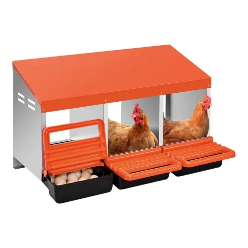 VEVOR Chicken Nest Box, 3-Compartment, 15 to 30 in Stable & Corrosion-Resistant Metal Nesting Boxes with Inclined Nesting Boxes, Bottom Holes & Resting Platform, Fit for Different Chicken Breeds