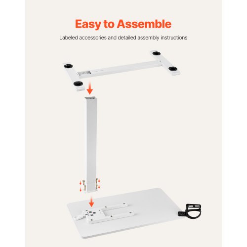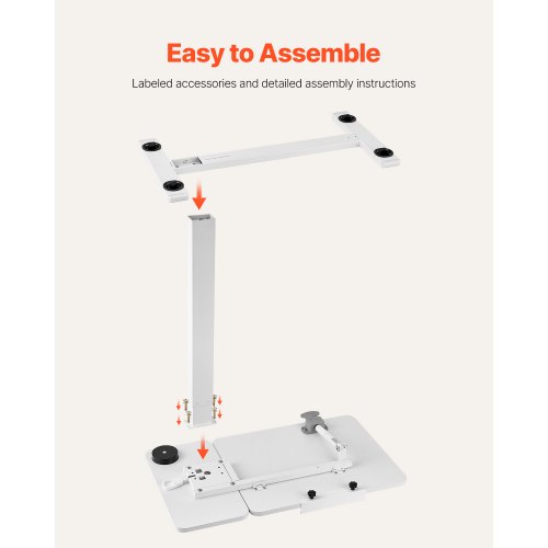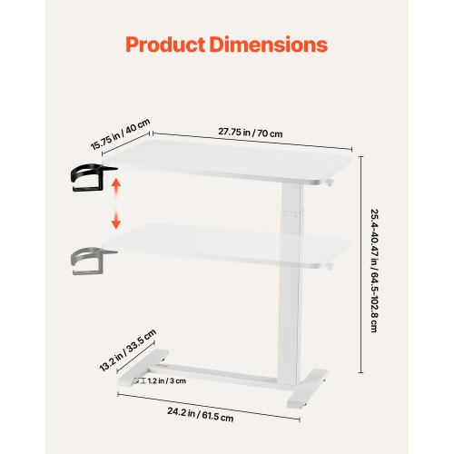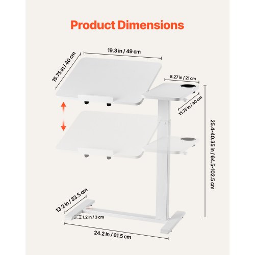 VEVOR Overbed Table, Mobile Bed Side Table with 4 Hidden Wheels, Height Adjustable Rolling Laptop Desk with Cup Holder, Portable Particleboard Over Bed Desk for Home, Office, Study, White