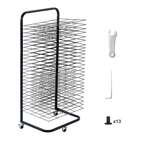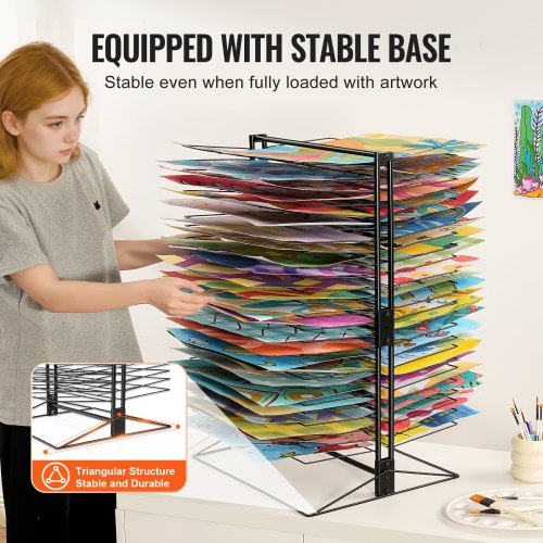 VEVOR Art Drying Rack, 50 Removable Shelves 20 x 17 x 30 inch Paint Drying Rack with Stable Base, Carbon Steel Metal Painting Drying Rack for Artwork in Classroom, Art Studios and Schools, Black